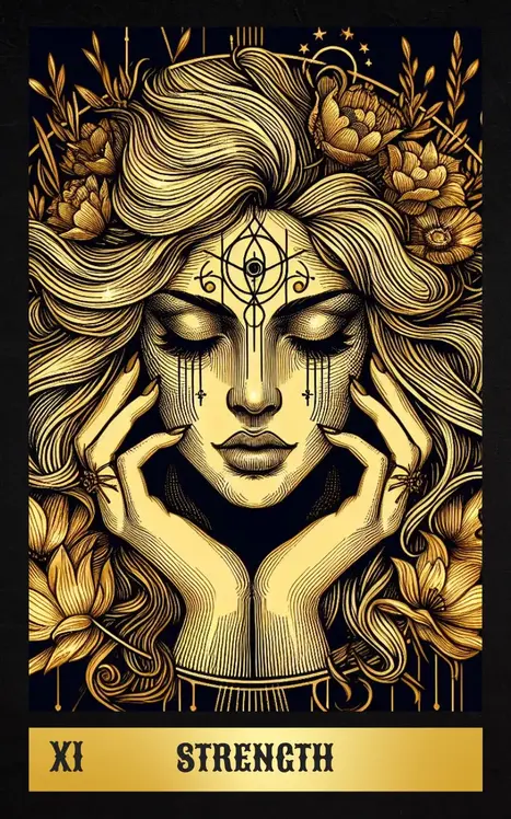 Strength doesn’t flex—it doesn’t need to. This card is about taming your inner chaos and facing challenges with calm, compassion, and unshakeable confidence. It’s not about brute force; it’s about mastery—over yourself, your fears, and whatever bullshit life throws your way. Strength reminds you that true power is steady, not loud.