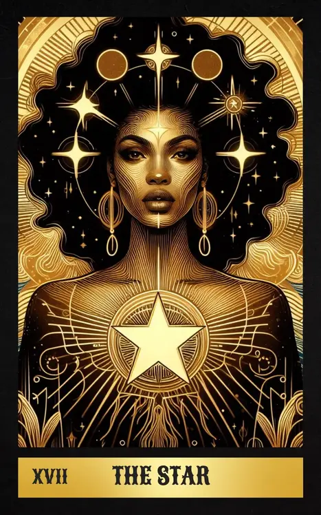 The Star is your cosmic nightlight. It’s not loud, it’s not pushy—it just quietly whispers, “Hey, you’re gonna be okay.” After a rough patch, this card is like sitting under a clear night sky, letting the peace sink in. It’s the promise of renewal, the kind of hope that makes you believe again, even if only a little. The Star says, “Keep going, babe. The best is yet to come.”