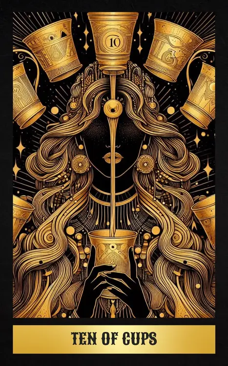 If The Sun is a party, the Ten of Cups is the after-party where you’re with your favorite people, living your best life. It’s not flashy or over-the-top; it’s the quiet, steady joy that comes from meaningful connections and finding your place in the chaos. This card is the tarot equivalent of a Hallmark movie done right—sentimental, sure, but it fucking works.